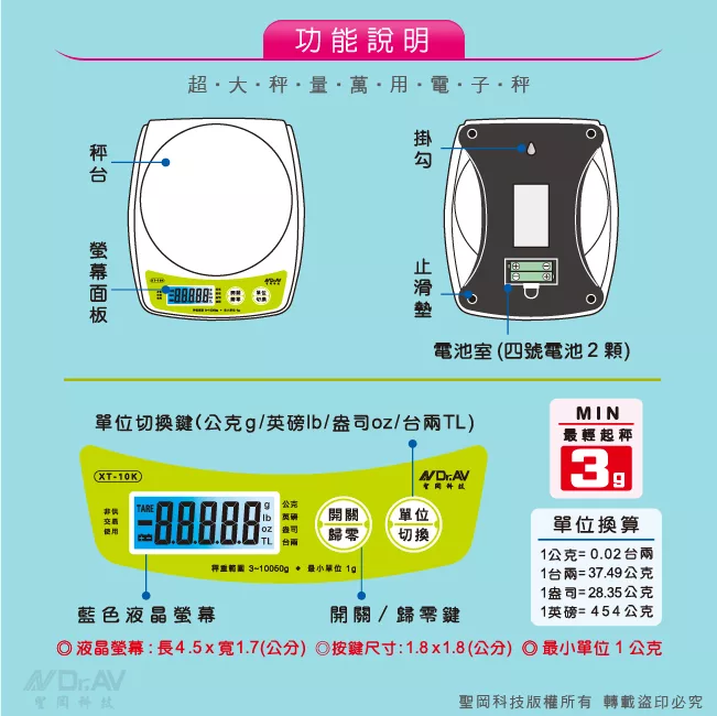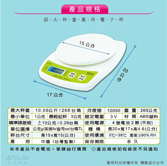 【Dr.AV】超大秤量萬用電子秤 (XT-10K)