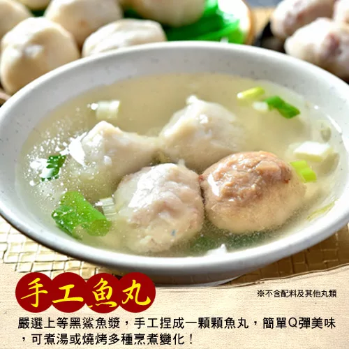 採用上等黑鯊打成魚漿後,手工捏成一顆顆魚丸,可做點心亦可做湯,簡單美食、亦能有多種烹煮變化。