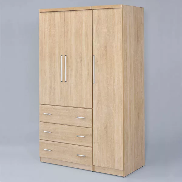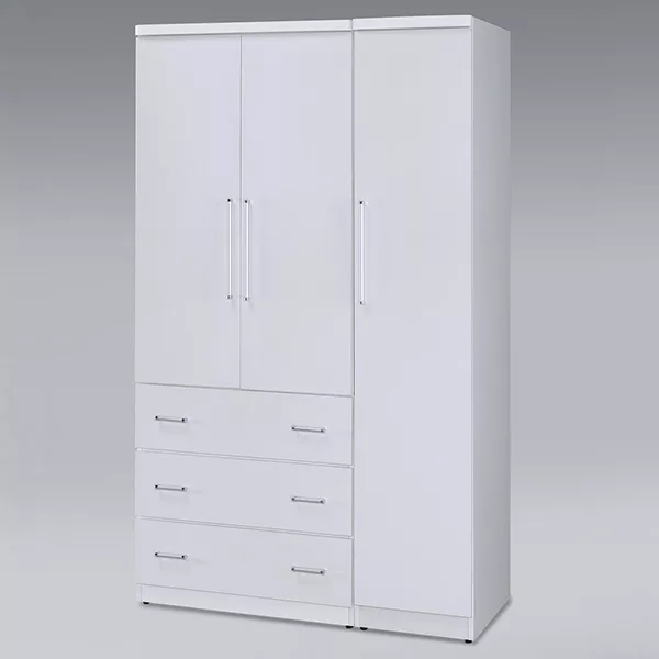 Homelike 肯奇4x7衣櫃,材質採用堅固耐用的木心板,背面則為釘附式的美背處理,內部空間規劃為:兩處吊衣空間設計,吊掛衣服不皺摺;三大抽屜收納,使用鋼珠滑軌五金,整理衣物開合省力又輕鬆;單格的置物空間,讓收納更多元;另附貼心穿衣鏡設計,整衣、穿衣一次OK,如此超值又實用的衣櫃,絕對不容錯過喔!