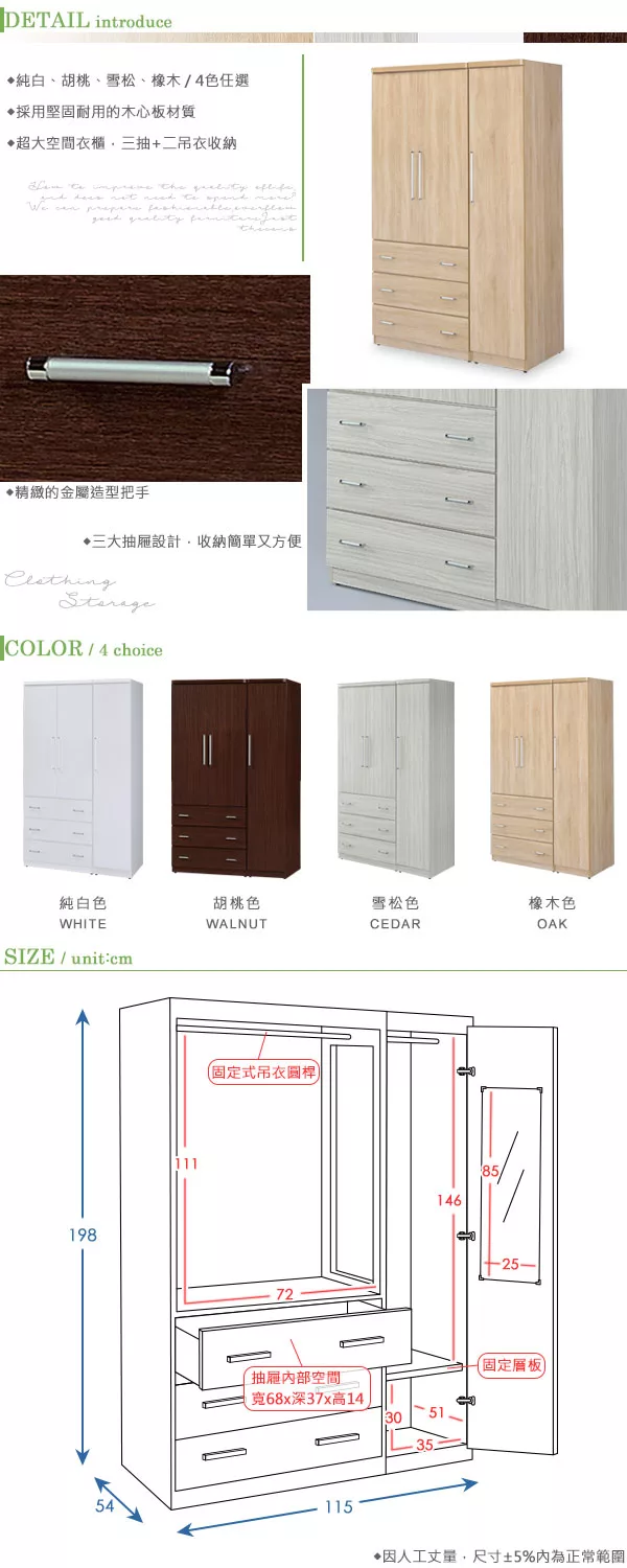 尺寸:寬 115 x 深 54 x 高 198 公分